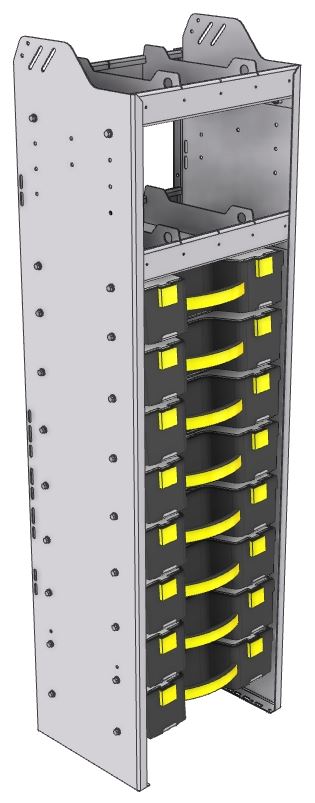 Square back carry case cabinet 18-7/8"Wide x 13.5"Deep x 63"High with 8 Carrycases