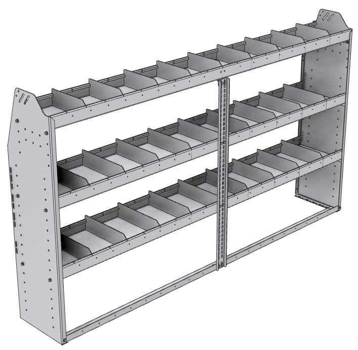 Profiled back bin shelf unit 43"Wide x 13.5"Deep x 48"High with 4 shelves