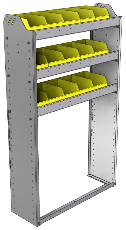 Square back bin shelf unit 34.5"Wide x 11.5"Deep x 58"High with 3 shelves