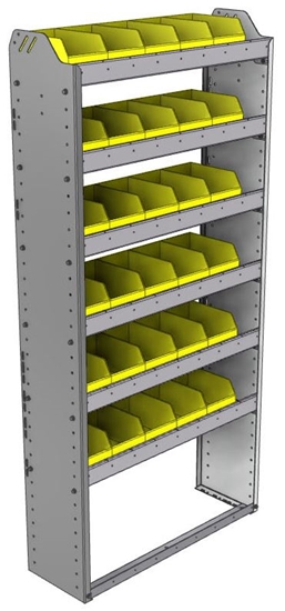 Square back bin shelf unit 34.5"Wide x 11.5"Deep x 72"High with 6 shelves