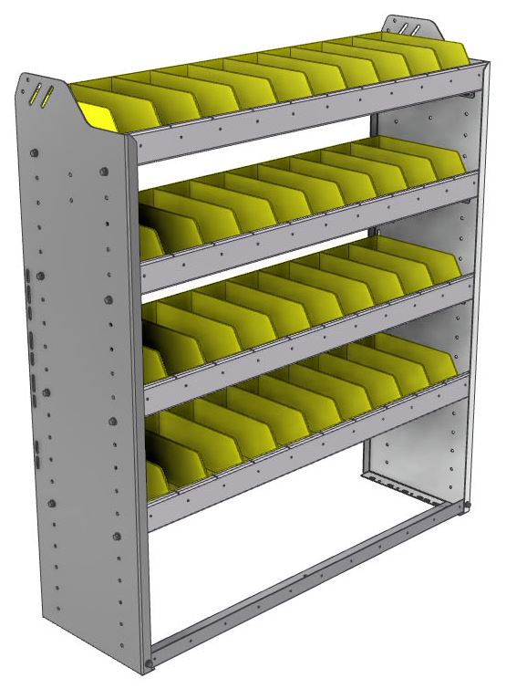 Square back bin shelf unit 43"Wide x 13.5"Deep x 48"High with 4 shelves