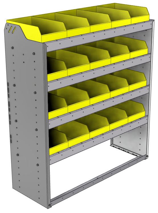 Square back bin shelf unit 43"Wide x 15.5"Deep x 48"High with 4 shelves