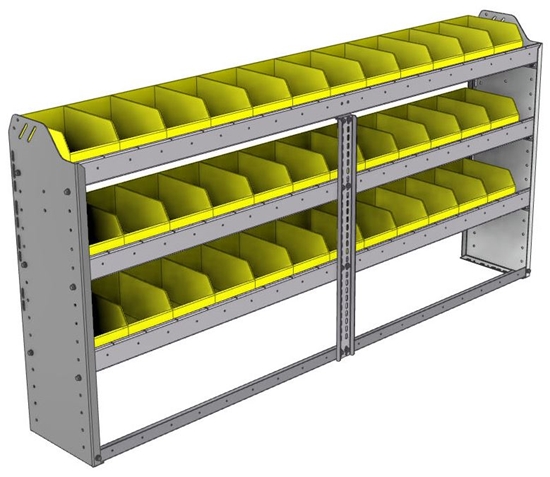 Square back bin shelf unit 77.750"Wide x 11.5"Deep x 36"High with 3 shelves