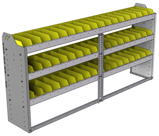 Square back bin shelf unit 77.750"Wide x 13.5"Deep x 36"High with 3 shelves