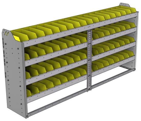 Square back bin shelf unit 77.750"Wide x 13.5"Deep x 36"High with 4 shelves