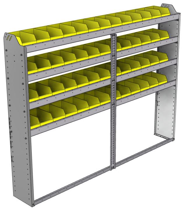 Square back bin shelf unit 86.375"Wide x 11.5"Deep x 63"High with 4 shelves