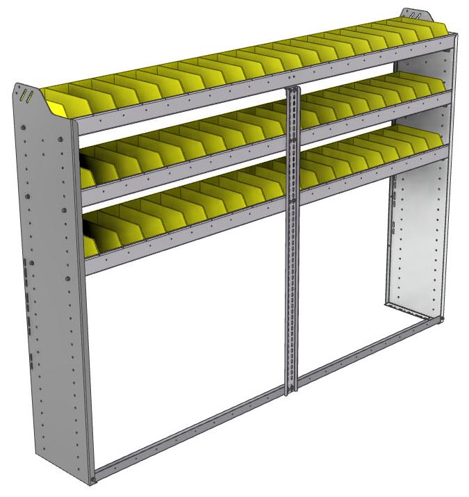 Square back bin shelf unit 86.375"Wide x 13.5"Deep x 58"High with 3 shelves