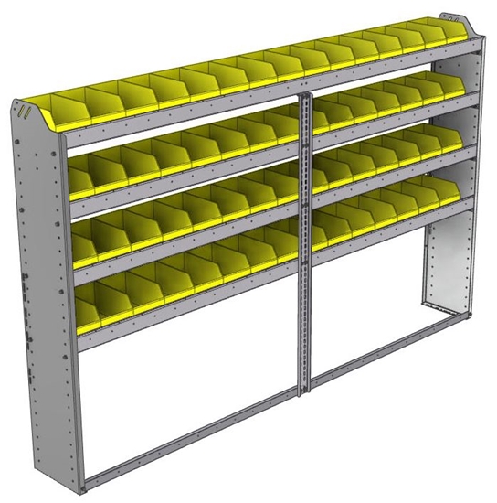 Square back bin shelf unit 95"Wide x 11.5"Deep x 58"High with 4 shelves