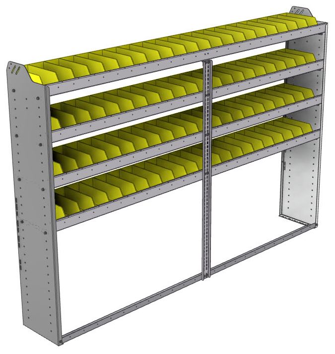 Square back bin shelf unit 95"Wide x 13.5"Deep x 63"High with 4 shelves
