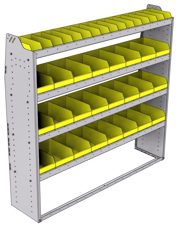 Profiled back bin shelf unit 69.125"Wide x 15.5"Deep x 63"High with 4 shelves