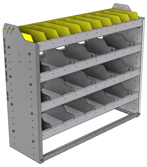 Square back bin separator combo shelf unit 43"Wide x 13.5"Deep x 36"High with 4 shelves