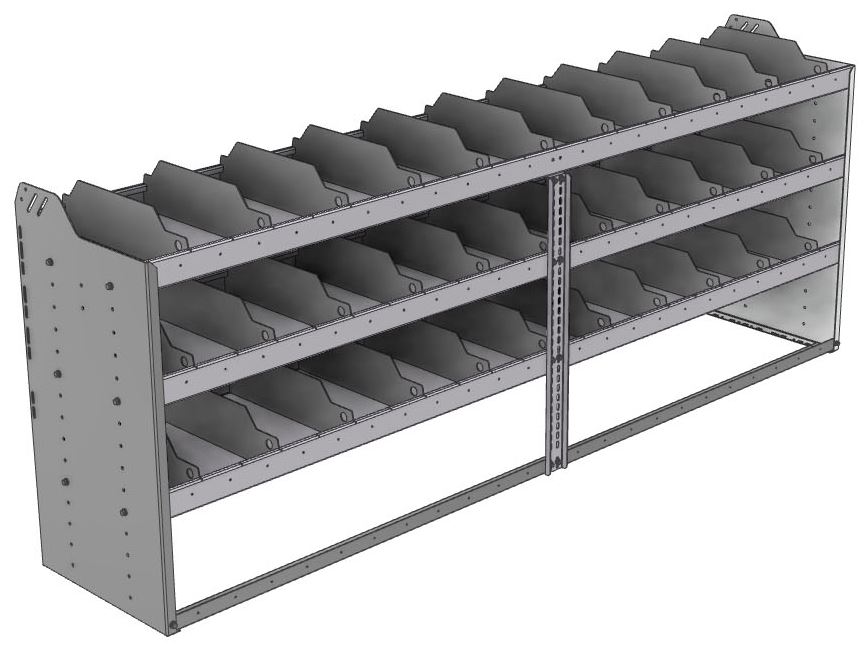 Square back bin separator combo shelf unit 95"Wide x 18.5"Deep x 36"High with 3 shelves